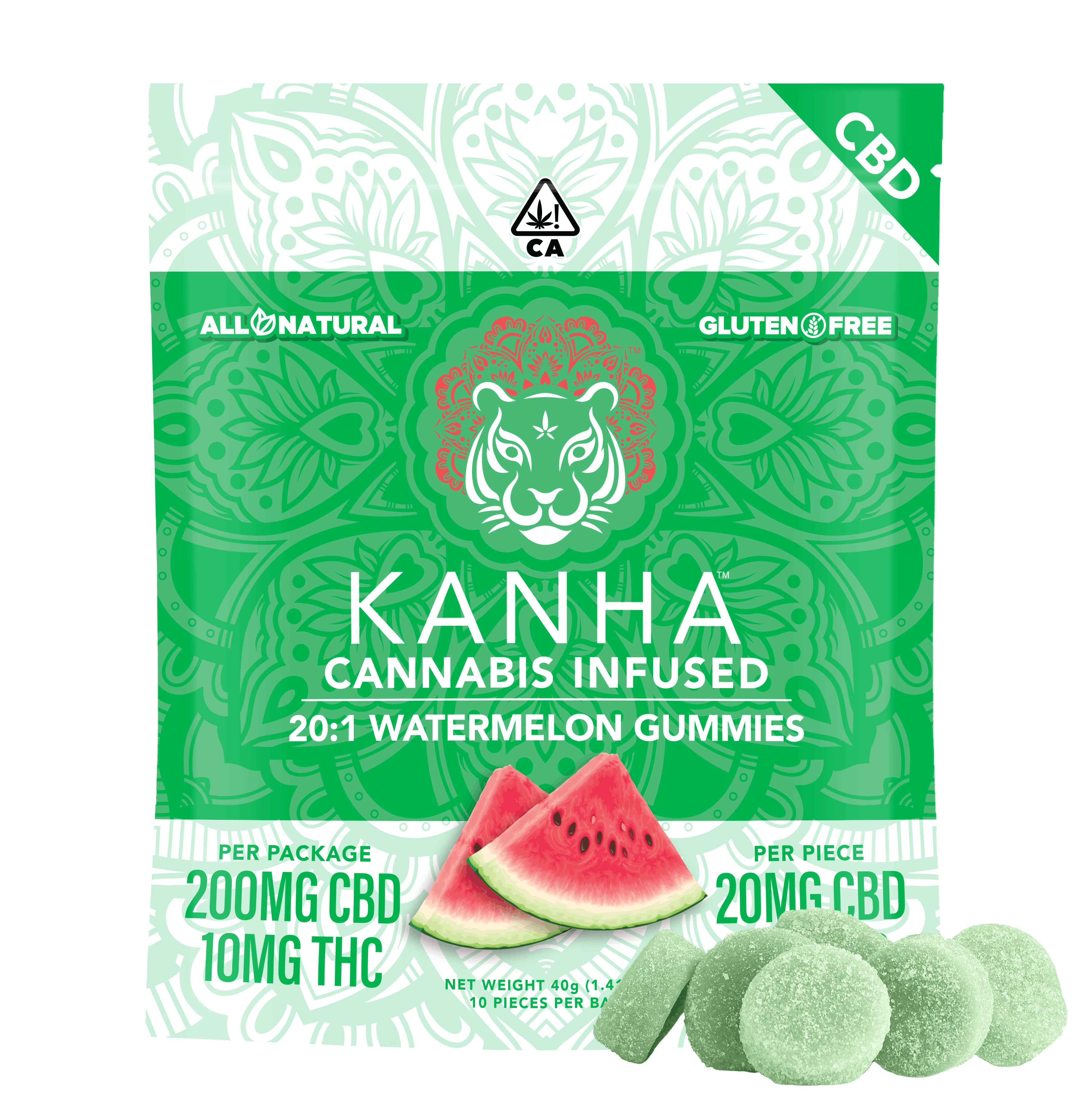 Our Watermelon 20:1 gummies are refreshingly juicy and made with 20mg CBD with just a hint of THC per gummy. CBD is a non-psychoactive cannabinoid believed to be an anti-inflammatory agent, natural sleeping aid, anxiety suppressant, pain reducer, and more.