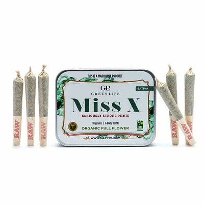 Las Vegas, Nevada Miss X Baby J's by Green Life Productions is a pre-rolled indica dominant strain with a THC content of 25.07%. Each perfect puff from this 1.8-gram ready-made joint delivers potent and vibrant effects. It guarantees a fantastic and relaxed experience with every lit session.